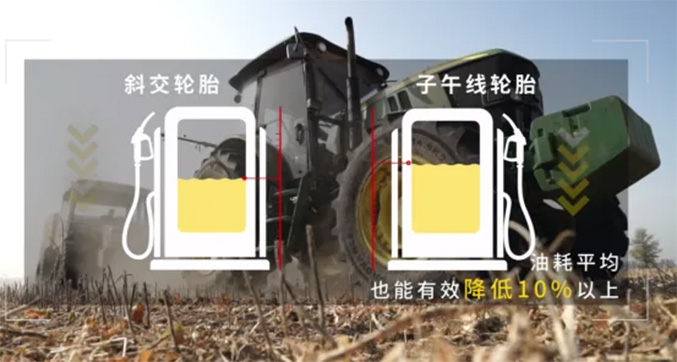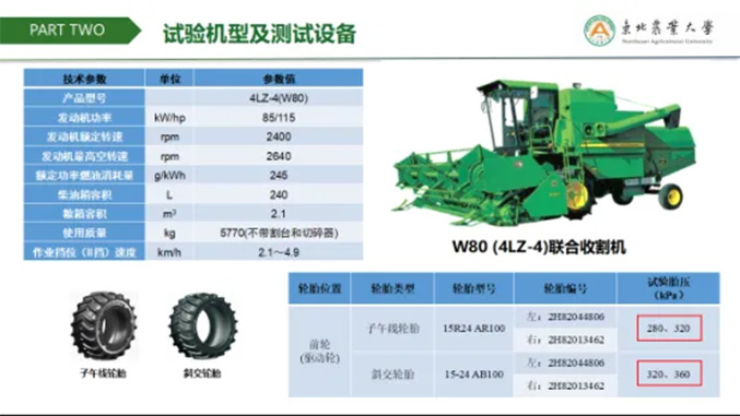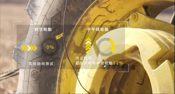 田間作業中在相同胎壓下,子午線輪胎收割(gē)機作業速度斜交胎(tāi)更快速,滑轉率低(dī),有效降低了濕軟田地陷車打滑風險。道路和田間工況,配置胎壓280kPa子午線輪胎的聯合收割機牽引功率均顯著提高,耗油率均顯著降低。且在重載工況下(xià)仍能保持穩定油耗,綜合燃油經濟性突出。