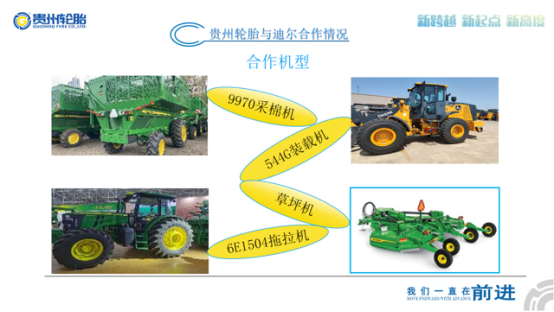 貴(guì)州輪胎(tāi)與約翰(hàn)迪爾從2015年開始合作至今,一直為約翰迪爾提供高品質的輪胎產品、高效率的市場營銷服務和一攬子農業機械輪胎解決方案。貴州輪胎的農業機(jī)械輪胎自主研發創新能力、高效率的輪胎解決方案服務能力,與約翰迪(dí)爾的核心價值觀“誠(chéng)實、優質、守信、創新”有異曲同工之處。貴(guì)州輪胎與約翰迪爾使命一致,都是致(zhì)力於為(wéi)用戶提供高價值的需(xū)求所選。因此雙方從最開始(shǐ)的單一機型合作到如今的多個(gè)板塊開展深入交流合作。